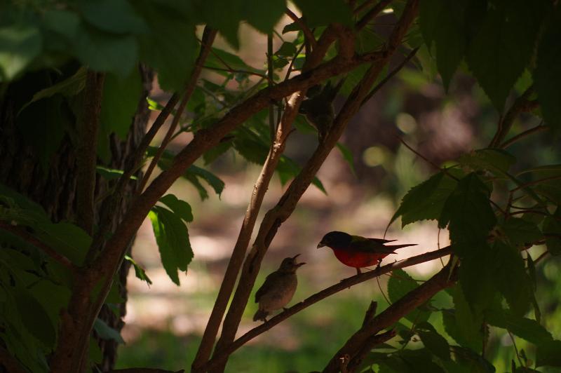 Painted Buntings in our peach tree. There was a nest in a pear tree also.