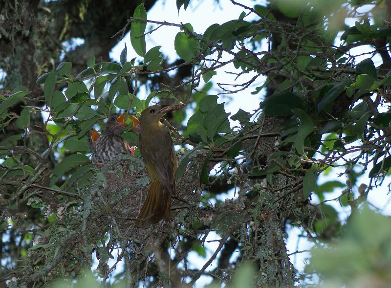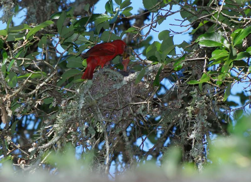 Summer Tanager. They build high in live oaks.