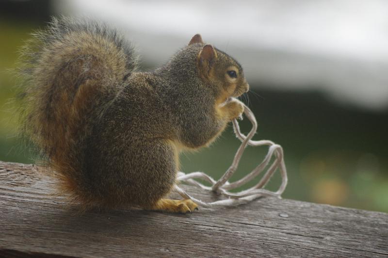 This squirrel spent a lot of time trying to get all the string in its mouth to take to its nest.