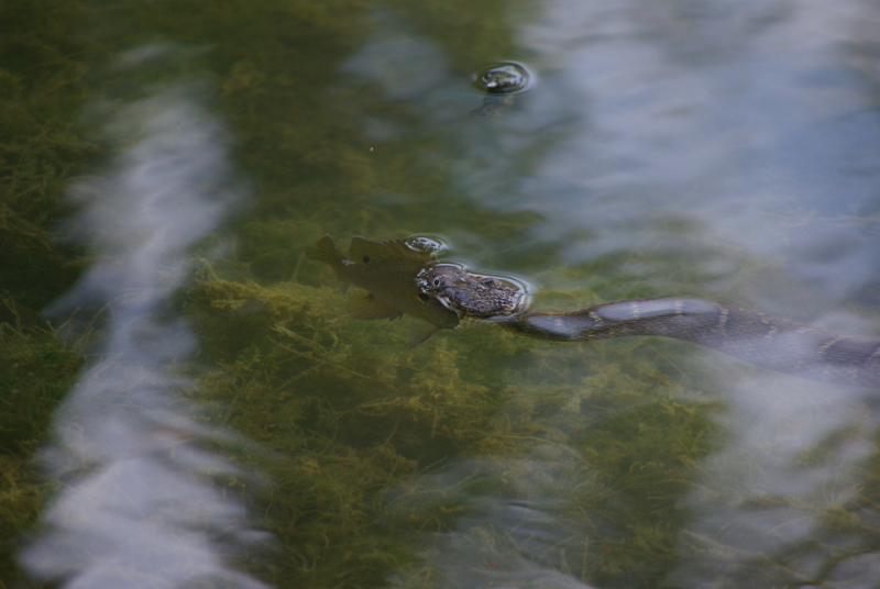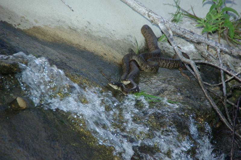 Eastern Blotched Water snakes waiting for a fish to come over the waterfall.