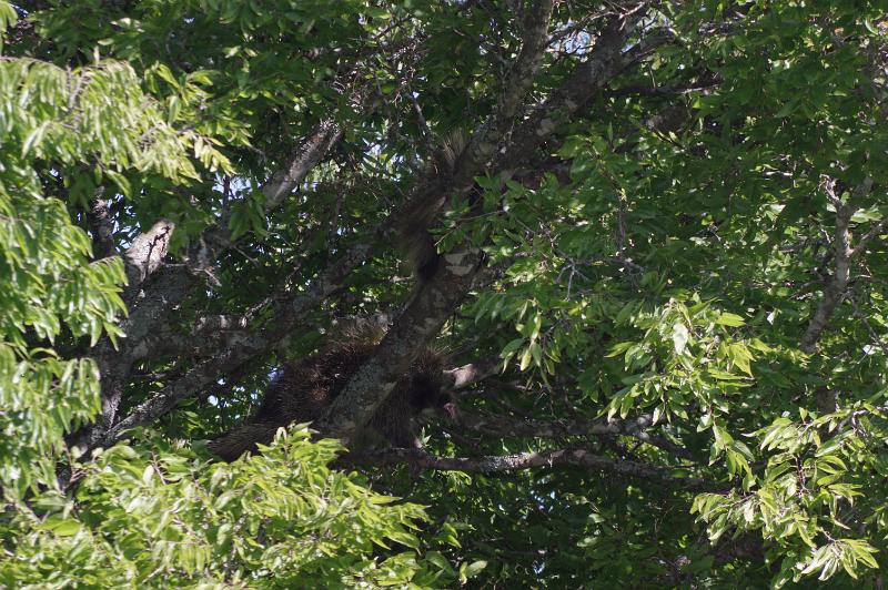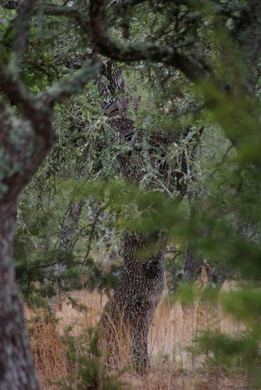 A prickly pair sleeping in a big hackberry. They were foraging for berries earlier.