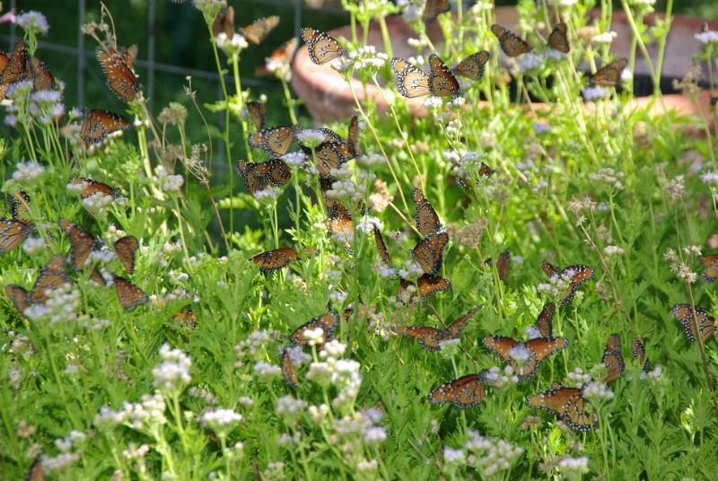 Queen butterflies love Gregg's Blue Mist Flower.