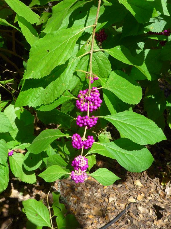 American Beauty Berry. Birds eat the berries. Needs water.