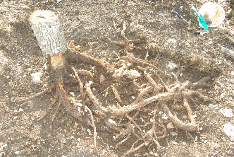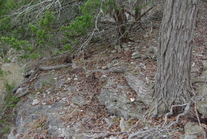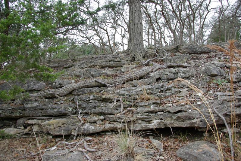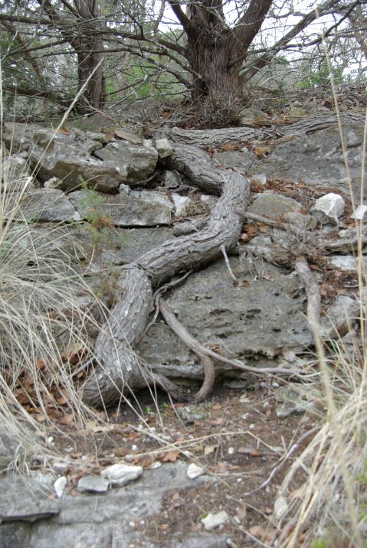 Cedar Elm roots on a rock ledge.